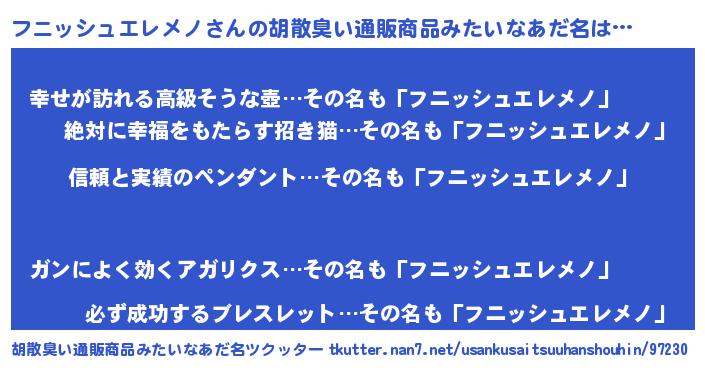 | 意味不明あだ名 | 『とにかく怪しいフニッシュエレメノ』 |
