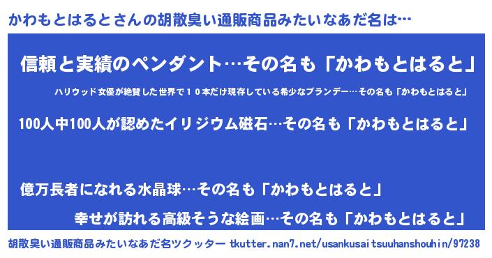 | ヘコむあだ名 | 『かわっぺ』『つくし』『かわにー』 |