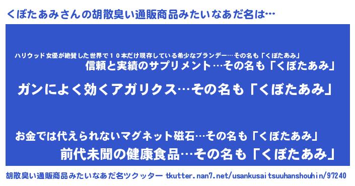 | 意味不明あだ名 | 『自称くぼたあみ』『永久保存くぼたあみ』 |