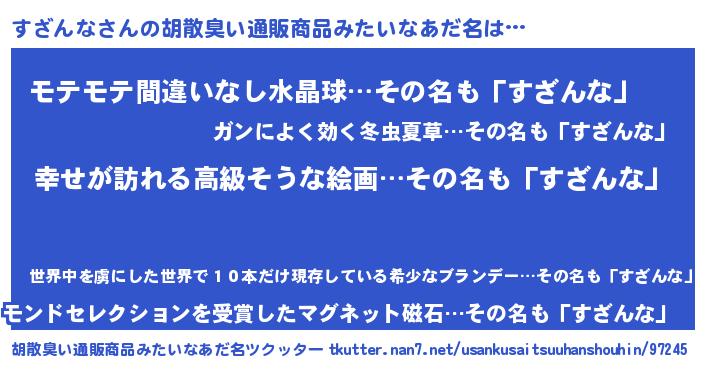 | 意味不明あだ名 | 『すざんなフォーエバー』『自称すざんな』 |