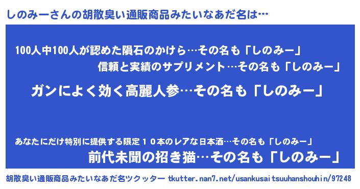 | ヘコむあだ名 | 『しのみー(笑)』『しのぷりん』 |