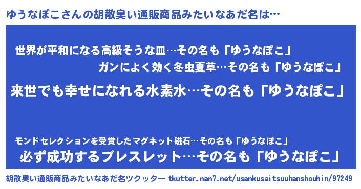 | 意味不明あだ名 | 『永久保存ゆうなぽこ』『自称ゆうなぽこ』 |