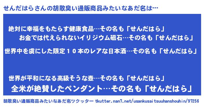 | 意味不明あだ名 | 『住所不定無職せんだはら(59歳)』 |