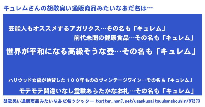 | ヒーロー風カッコイイあだ名 | 『ウルトラキュレムマン』『ネオキュレム』 |