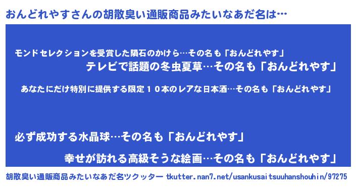 | 意味不明あだ名 | 『住所不定無職おんどれやす(41歳)』 |