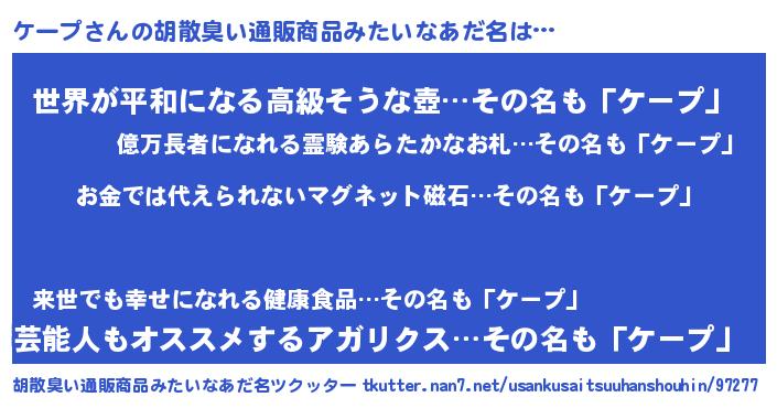 | 意味不明あだ名 | 『眠気覚ましガムケープ味』『自称ケープ』 |
