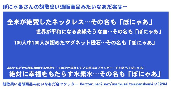 | ヒーロー風カッコイイあだ名 | 『正義の使者ぼにゃあ』『幻影騎士ボニ』 |