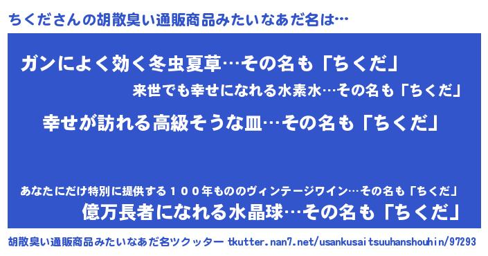 | 意味不明あだ名 | 『ちくだフォーエバー』『自称ちくだ』 |