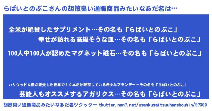 | ヘコむあだ名 | 『らばを』『酢こんぶ』『らばにゅー』 |