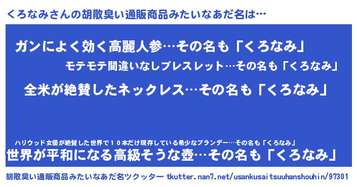 | 意味不明あだ名 | 『とにかく怪しいくろなみ』 |