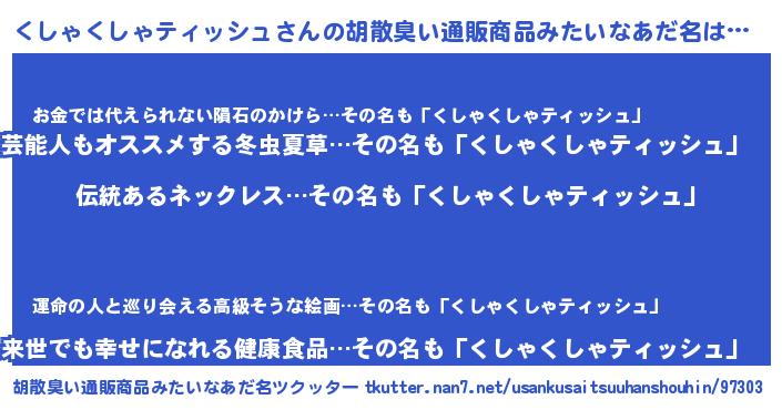 | 意味不明あだ名 | 『とにかく怪しいくしゃくしゃティッシュ』 |