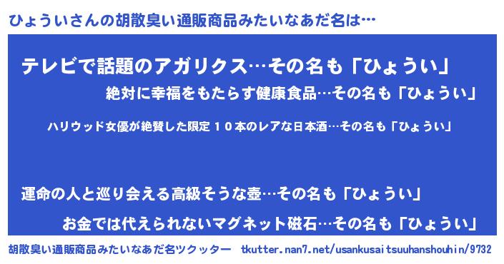| 意味不明あだ名 | 『住所不定無職ひょうい(53歳)』 |