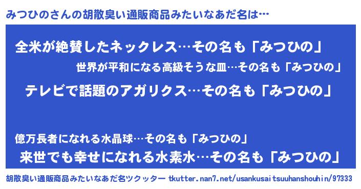 | 意味不明あだ名 | 『自称みつひの』『永久保存みつひの』 |