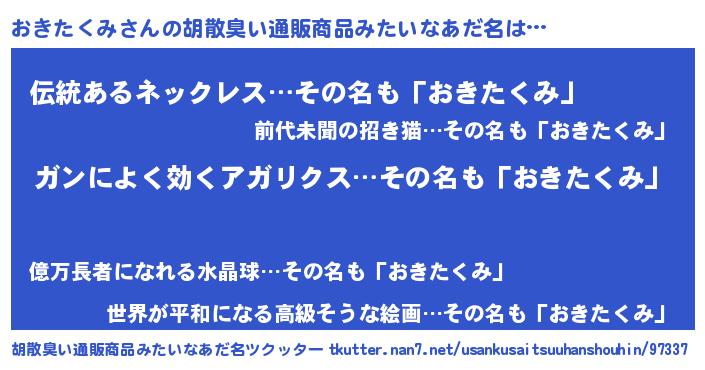 おきたくみさんの胡散臭い通販商品みたいなあだ名をツクッター!