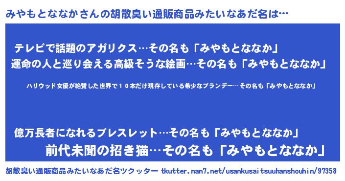 | 伝説のあだ名 | 『聞きしに勝る勇者みやもとななか』 |