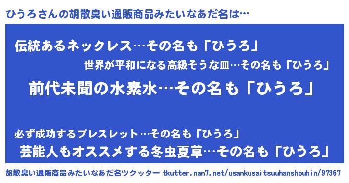 | ヘコむあだ名 | 『ひうろ(遠い目)』『ひうっ子』 |