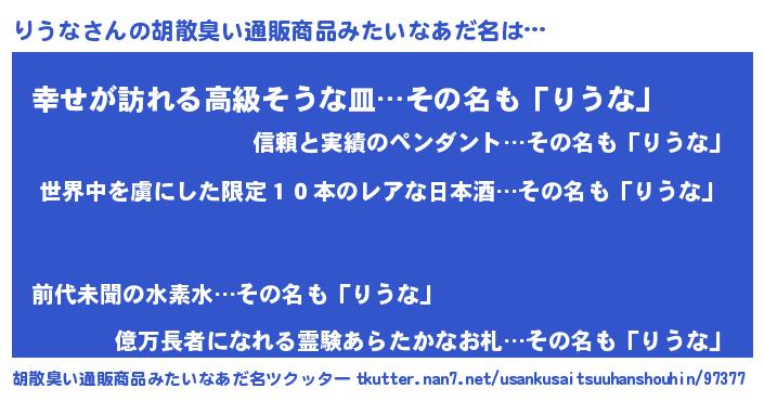 | 意味不明あだ名 | 『住所不定無職りうな(56歳)』 |