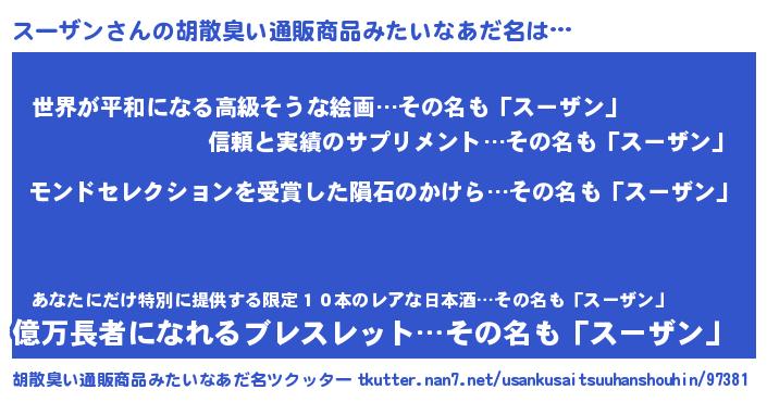 | 意味不明あだ名 | 『眠気覚ましガムスーザン味』 |