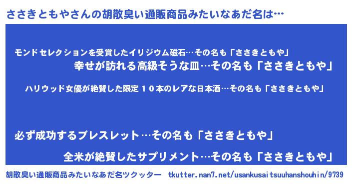 | ヘコむあだ名 | 『ささ太郎』『レバニラ』『ささもー』 |