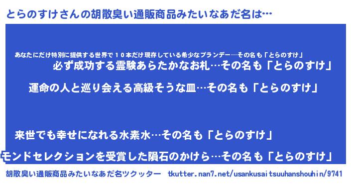 | 欧米人風あだ名 | 『とらのすけクリステル』 |