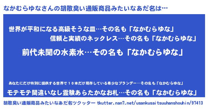 | 意味不明あだ名 | 『永久保存なかむらゆな』 |