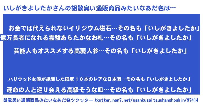 | 意味不明あだ名 | 『自称いしがきよしたか』 |