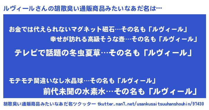 | 恥ずかしいあだ名 | 『ルヴィールデラックス』『ルヴちん』 |