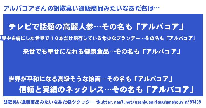 | ヘコむあだ名 | 『アルバコア(苦笑)』『アルっぺ』 |