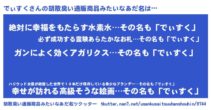 | 恥ずかしいあだ名 | 『ディスクデラックス』『でぃちん』 |
