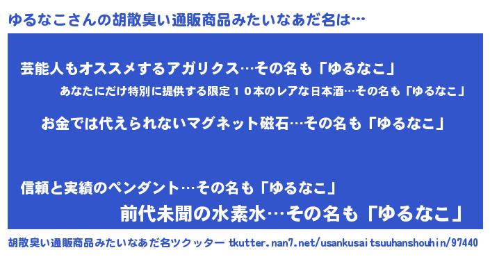 | ヒーロー風カッコイイあだ名 | 『愛の使者ゆるなこ』『究極戦士ユルナコ』 |