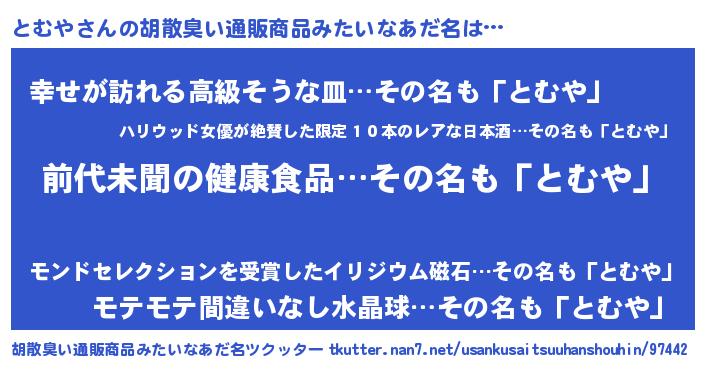 | 意味不明あだ名 | 『永久保存とむや』『とむやフォーエバー』 |