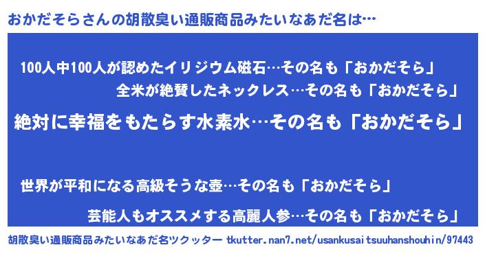 | 意味不明あだ名 | 『永久保存おかだそら』『自称おかだそら』 |