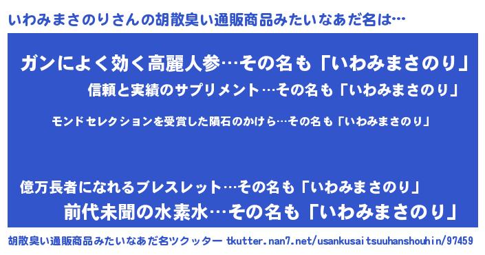 | ヘコむあだ名 | 『いわみまさのり(遠い目)』『いわ太郎』 |