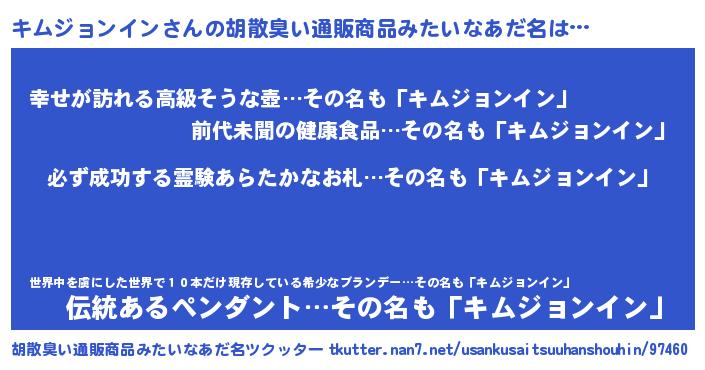 | 男性向けラノベタイトル風あだ名 | 『キムジョンインの憂鬱』 |