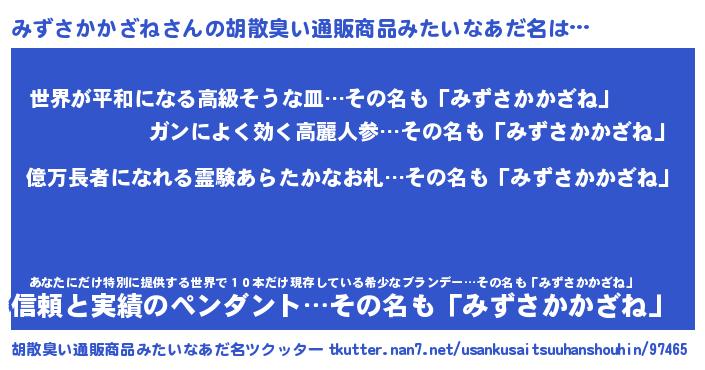 | ヒーロー風カッコイイあだ名 | 『スーパーミズサカカザネ』 |