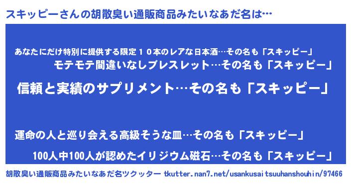 | 女子向けラノベタイトル風あだ名 | 『スキッピーは平凡を望む』 |