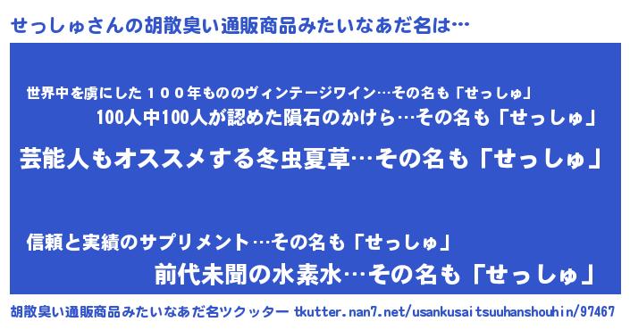 | ヘコむあだ名 | 『せっしゅ(苦笑)』『せっを』『牛乳』 |