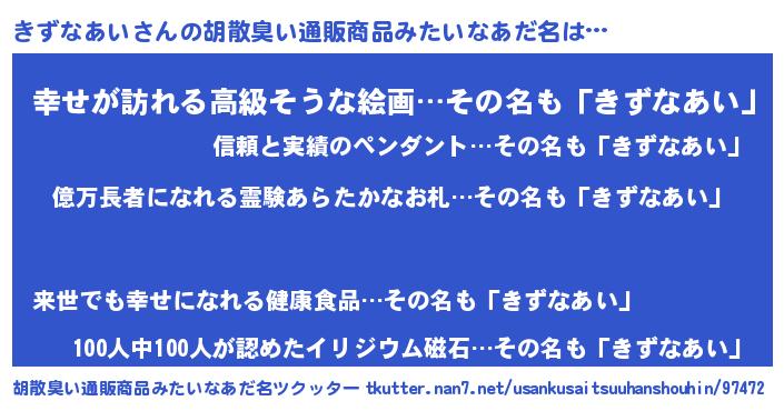 | 恥ずかしいあだ名 | 『プリティーきずなあい』『きずっちょ』 |
