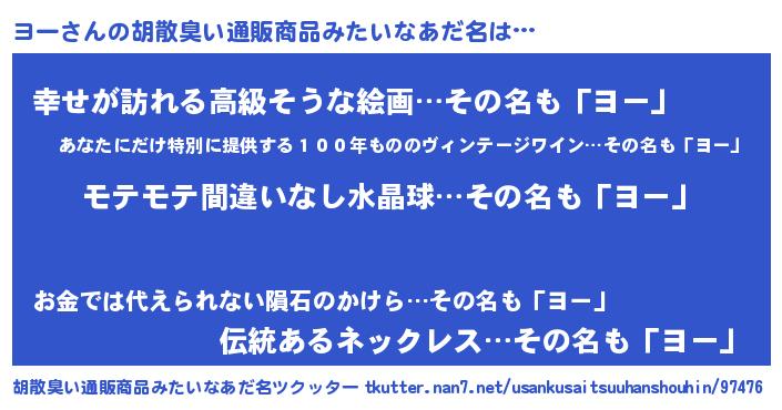 | ヘコむあだ名 | 『ヨーにゅー』『つくし』『ヨーを』 |