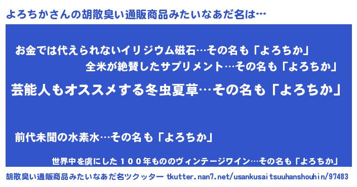 | 男性向けラノベタイトル風あだ名 | 『Re:よろちかから始める異世界生活』 |