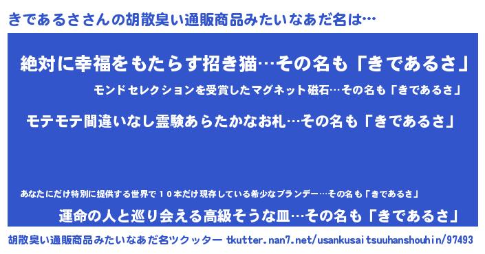 | 肩書あだ名 | 『きであるさ上級大将』『きであるさ社長』 |