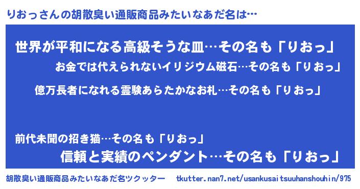 | 意味不明あだ名 | 『ペロリンりおっ』『りおっフォーエバー』 |