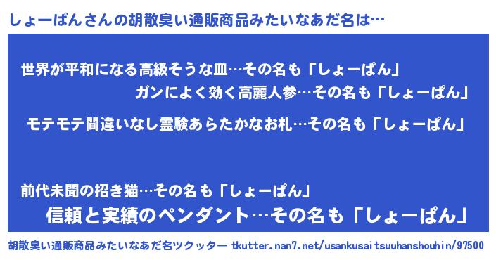 | 意味不明あだ名 | 『ペロリンしょーぱん』『自称しょーぱん』 |