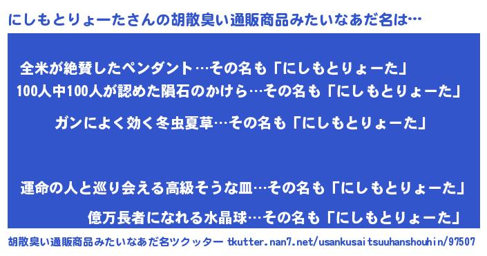 | 意味不明あだ名 | 『自称にしもとりょーた』 |
