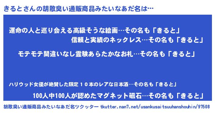 | 男性向けラノベタイトル風あだ名 | 『きるとの憂鬱』『緋弾のキルト』 |