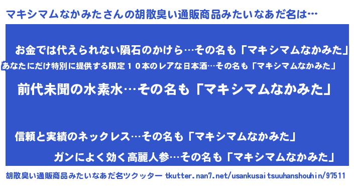 | 意味不明あだ名 | 『永久保存マキシマムなかみた』 |