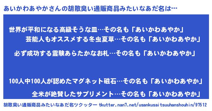 | 恥ずかしいあだ名 | 『プリティーあいかわあやか』 |