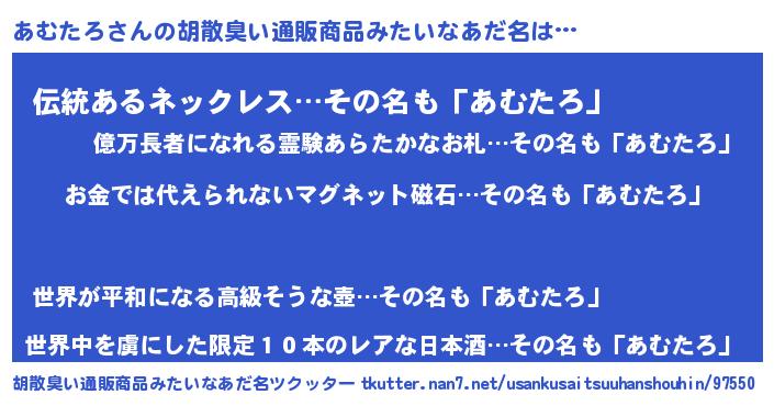 | 肩書あだ名 | 『あむたろ教授』『あむたろディレクター』 |