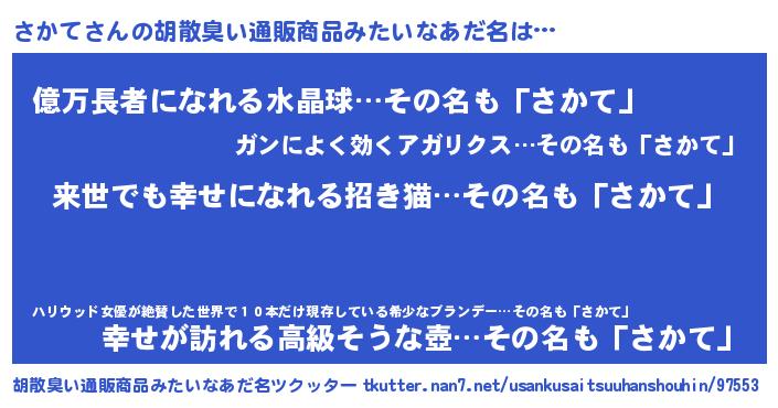 | 意味不明あだ名 | 『永久保存さかて』『ペロリンさかて』 |