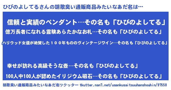 | 意味不明あだ名 | 『住所不定無職ひびのよしてる(13歳)』 |